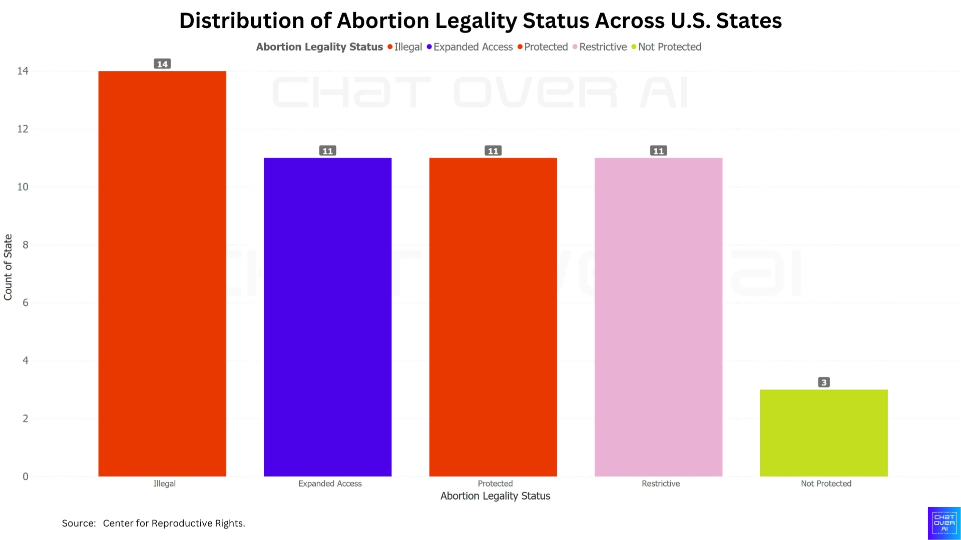 Expanded Access (11 states): Full access to abortion services without major restrictions—think of it as the VIP lounge of reproductive rights. No hurdles, just choice.