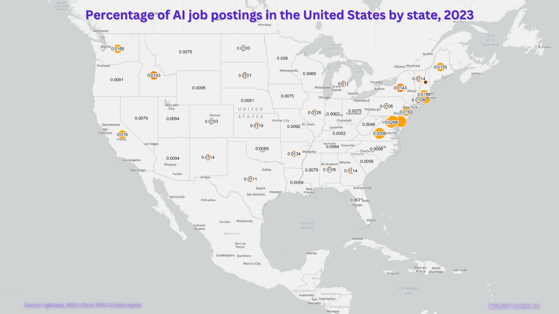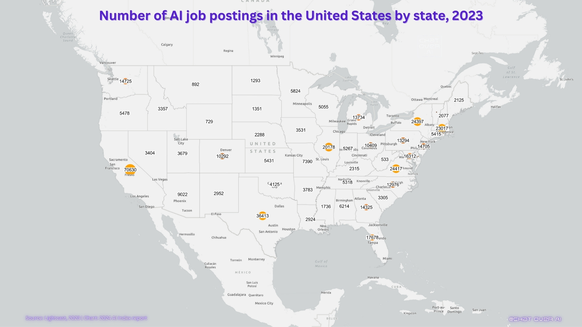 States like North Dakota, Montana, and Wyoming have fewer than 1,000 AI job postings. It’s almost as if AI decided that the vast open fields just weren't exciting enough. But don’t count them out yet—as AI continues to expand, there’s no telling where the next big surge might happen. (And who knows? Maybe AI cowboys are coming soon.)