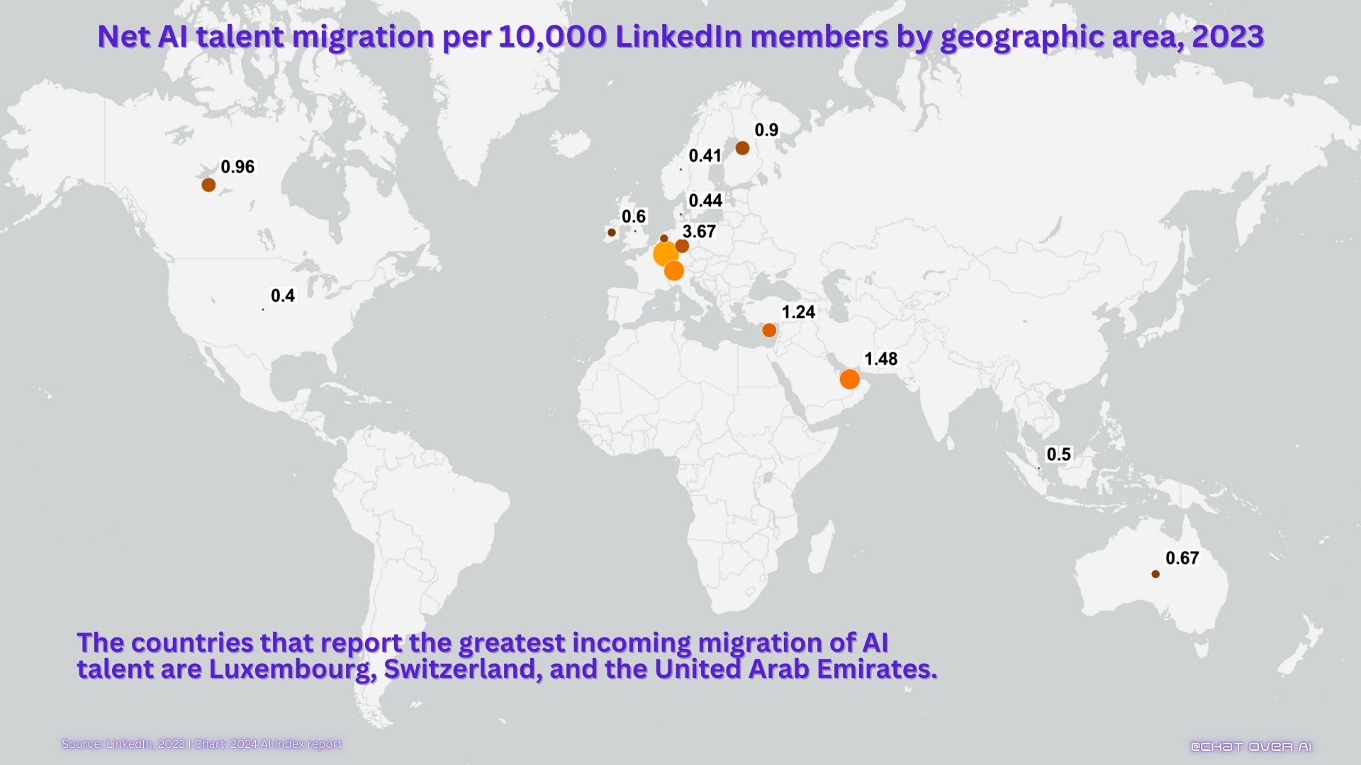 Countries like the UAE and Luxembourg are setting the stage for becoming future AI powerhouses, while nations like Canada and Switzerland continue to build on a stable foundation of growth and innovation. If you're an AI professional seeking your next adventure, these migration trends might be your travel itinerary for the next big opportunity.