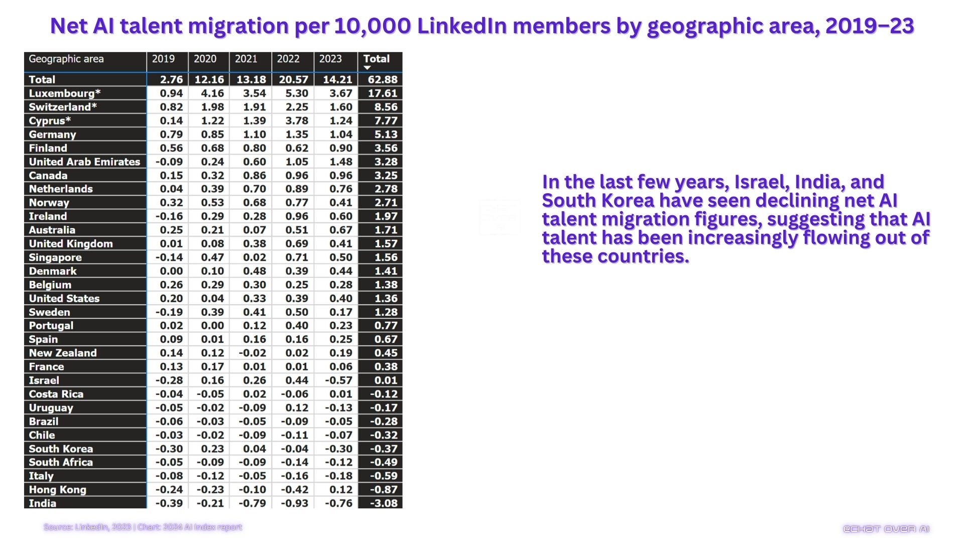 If you’re wondering where the AI superstars are heading, look no further than Luxembourg and Switzerland. Luxembourg boasts the highest net AI talent migration, with an impressive 3.67 per 10,000 LinkedIn members. I mean, who knew? It seems AI professionals want more than just cheese and chocolates—they want opportunities and perhaps a beautiful view while they code.